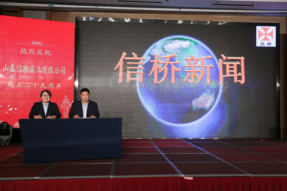 歲月如歌,風(fēng)霜如畫,二十九年彈指一揮間,山東信橋?qū)崢I(yè)有限公司(以下簡稱山東信橋)迎來了二十九周歲的生日。二十九年來,信橋人在激烈的市場(chǎng)競爭中奮力拼搏、砥礪前行,接受了市場(chǎng)風(fēng)風(fēng)雨雨的洗禮,取得了累累碩果。為了慶祝這一特殊的日子,2023年8月8日,以“激流勇進(jìn),安定團(tuán)結(jié)謀發(fā)展 披荊斬棘,開拓創(chuàng)新向未來”為主題的山東信橋二十九周年慶典活動(dòng)在寶盛大酒店舉行。