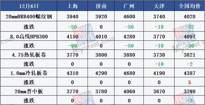 ◎建材成交量:12月6日,Mysteel全國貿(mào)易商建材日成交量為16.71萬噸,較上一交易日增加2.63萬噸。